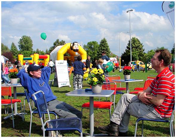 ![]() Eintracht/E-Plus-Benefizspiel: Transplantationsbegleitung e.V. Bilanz des Benefizspiels der E-Plus-Auswahl gegen die Eintracht am vergangenen Sonntag in Gifhorn: 2.500 Euro Spendensumme für die beiden Hilfsorganisationen Köki und Transplantationsbegleitung e.V. In einer kleinen Feierstunde übergaben Jörg Borm, Pressesprecher des Mobilfunkunternehmens E-Plus in der Region Nord, und Carsten Schulz, kaufmännischer Geschäftsführer der Eintracht die beiden Schecks an die Institutionen. Neben der Spendensumme überreicht Borm zudem zwei Mobiltelefone des Förderers SonyEricsson an die Vereine. „Unser Konzept ging auf, die Zuschauer haben sich beim E-Plus-Tag gut unterhalten und damit auch erkrankte Kinder und deren Familien unterstützt“, zieht Borm eine positive Bilanz der Veranstaltung. „Wir bedanken uns ganz herzlich bei E-Plus, Eintracht Braunschweig, allen Beteiligten und den Zuschauern. Die Spende kommt uns für das therapeutische Schwimmen der behinderten Kinder im Alter von sechs bis sechzehn sehr gelegen?“, freut sich Heidi Bitterberg, Geschäftsführerin der Köki, über den Förderbeitrag. Im Februar bot die Eintracht dem Sponsor E-Plus ein Freundschaftsspiel an. Bereits im ersten Gespräch verständigten sich E-Plus und die Eintracht auf ein öffentliches Benefizspiel zugunsten kranker Kinder. Der Transplantationsbegleitung e.V., Deutschlands Patientenorganisation für Lungen- und Kinderherztransplantationen, war mit mehreren kleinen Patienten vor Ort und richtete eine kleine Waffelbackstube ein. „Es war eine sehr angenehme und friedliche Atmosphäre“, so der Geschäftsführer der Organisation. „Für solch eine schöne Sache waren unsere Patienten gerne vor Ort und haben der Eintracht die Daumen gedrückt - was ja auch geholfen hat“. Nach Schätzungen der Polizei verfolgten etwa 1.500 Gäste die spannende Partie des Bundesliga-Zweitligisten gegen eine Auswahl aus Lesern der Braunschweiger Zeitung, Mitarbeitern von E-Plus und Spielern des MTV Gifhorn im Sportpark Flutmulde. „Das Ergebnis der Partie war mit 7:0 für die Eintracht ordentlich, die Auswahl hat sich für den guten Zweck mächtig ins Zeug gelegt“, fasst Carsten Schulz von der Eintracht zusammen. “Unser großer Dank geht auch an die großen und kleinen Förderer, die das Rahmenprogramm erst ermöglichten“, so E-Plus-Vertreter Borm. Zu den großen Förderern gehörten neben BASE auch SonyEricsson, radio ffn, die Braunschweiger Zeitung und simyo. Bilder zum Event: 1.) Es geht um Fußball. Waffelchefkoch Burak nimmt Maß! 2.) Und dann war da das mobile Waffelcafé der TX Begleitung. Michael und Bert ruhen sich im Sitzbereich unseres Cafés von den Arbeiten aus, die sie noch nicht geschafft haben. 3.) Aber erst nachdem die Sonne raus kam wurde draußen gewaffelt. Vorher blieben wir gut bedacht in unserem 4 x 3 Meter Zelt - dem einzigen zugfreien Ort auf dem Platz (und deshalb sehr beliebt): 4.) Die drei Herren vom Grill. Links Chefkoch Detlef, daneben Oberchefkoch Burak und rechts Unternebenkoch Bert: 5.) Achja, es drehte sich doch alles um den Ball: Burak trägt mittlerweile anstatt seines Mundschutzes die Farben und das Wappen der Braunschweiger Eintracht, weil das Spiel (Endstand war 7:0 für die Eintracht, logisch!) in vollem Gange war. 6.) Burak darf nach dem Spiel in die Kabine und überreicht den Spielern des in der zweiten Fußballbundesliga spielenden Vereins ein Mosaik, mit dem er und Michael das komplizierte Vereinslogo gesetzt haben. Auf dem Weg nach drinnen mussten wir an hunderten neidischer Fans vorbeigeleitet werden. Das machte uns ein wenig Angst. 7.) Um 19:30 Uhr bekamen wir noch Unterstützung von der Satteldüne auf Amrum und bauten danach aber in Windeseile unser Café ab, da die dunklen Wolken zurückkamen und die sahen so aus, als wollten sie Wasser abwerfen. 8.)Alle sind sich einig, dass der Tag "voll geil" und "krass" war. Trotz des mächtig schädlichen Wetters fanden 1500 Menschen den Weg zum Sportpark Flutmulde in Gifhorn. Unser besonderer Dank geht an das leistungsstarke Team von e.plus, Eintracht Braunschweig, LOWA Sportschuhe und ODLO sowie die freiweilligen Helfer Burak, Detlef, Kerstin, Martin, Michael, Inge und Klaus. |